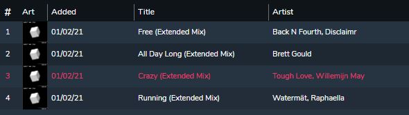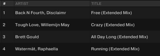 1. Track order. Attaching snapshots .. Traktor track playlist (4 tracks) with Artist names starting with B,T,B,W. In MIXO the list is re-ordered to alphabetic by artist as far as I can tell, numeric 1,2,3,4 so can't get back to original order in Traktor.