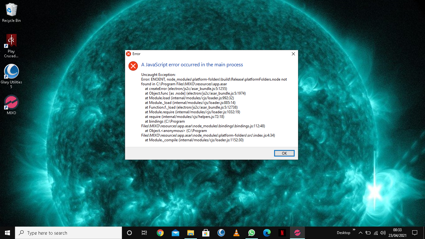 Can you send a screenshot of the error you are seeing? Also check that you have whitelisted the MIXO.exe file in your antivirus software as this can stop a part of the app from working and cause those kinds of errors.