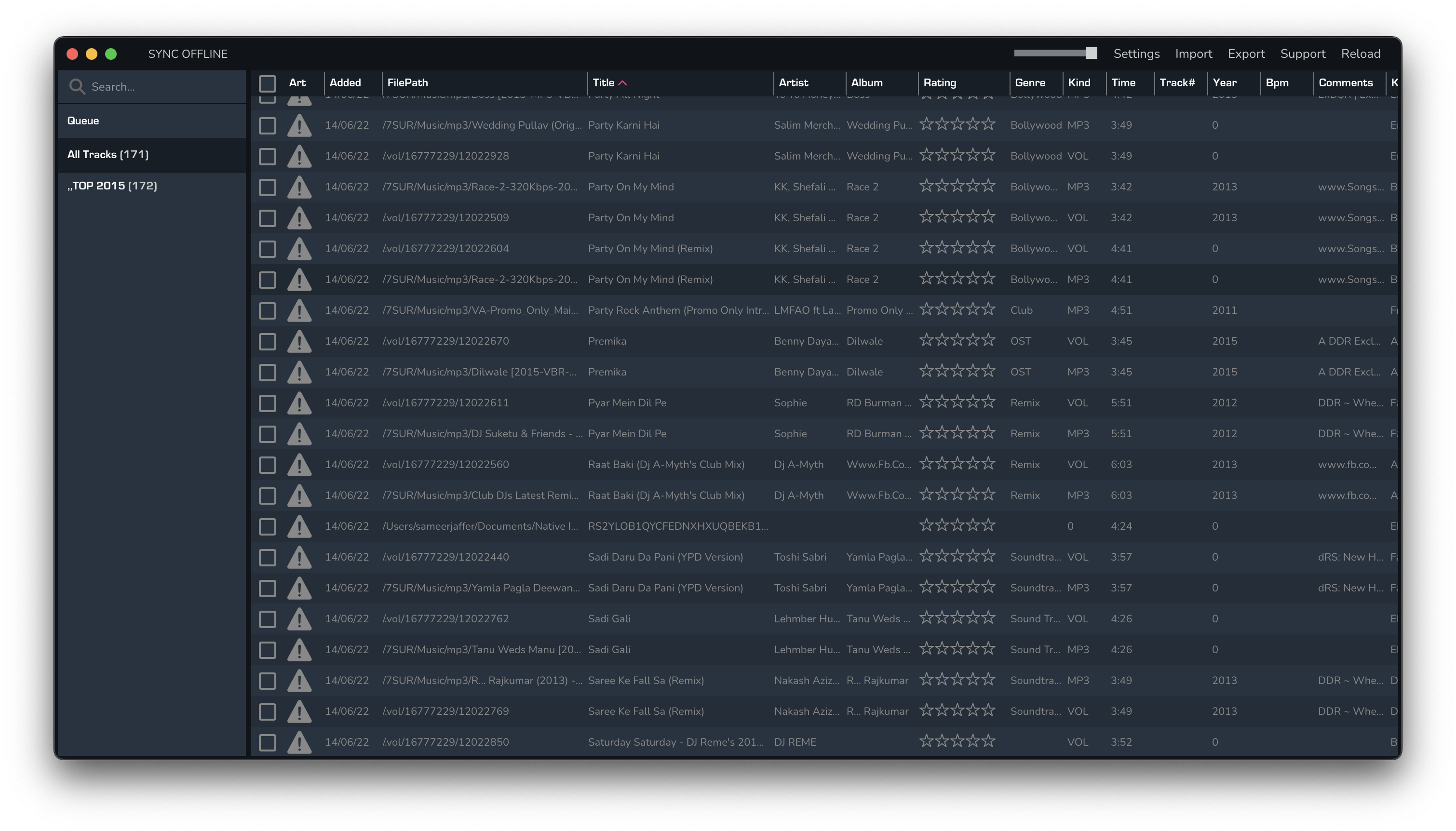 I am having issues importing from rekordbox into Mixo. When I try to import a playlist, the songs in the playlist turn out to be duplicate with different file paths. I also see that the correct file path is not the FQN and is missing the volume name. All of my files are on an external drive. I have added a screenshot which shows the duplicate names and non of the files work in Mixo. However, I have checked in RB and all files are in correct order in the collection and the playlist. No missing files etc.