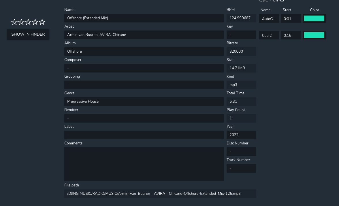 I'm running Traktor 3 with all my music on a USB stick. I have imported into MIXO using the Traktor .nml file and all the tracks and playlists seem to have been imported but every track file path appears to be broken (see screenshot). It looks like it has taken the USB drive name "DJ" off the start of the path and replaced it with a / so it can't find the files. It means I can't play or edit any songs at all. It's also not syncing them to the cloud.