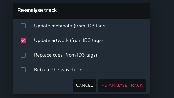 Just to clarify - if the track contains artwork, MIXO will extract during analysis after you import the track. If there is no artwork for a track in MIXO, it does not exist in the track.