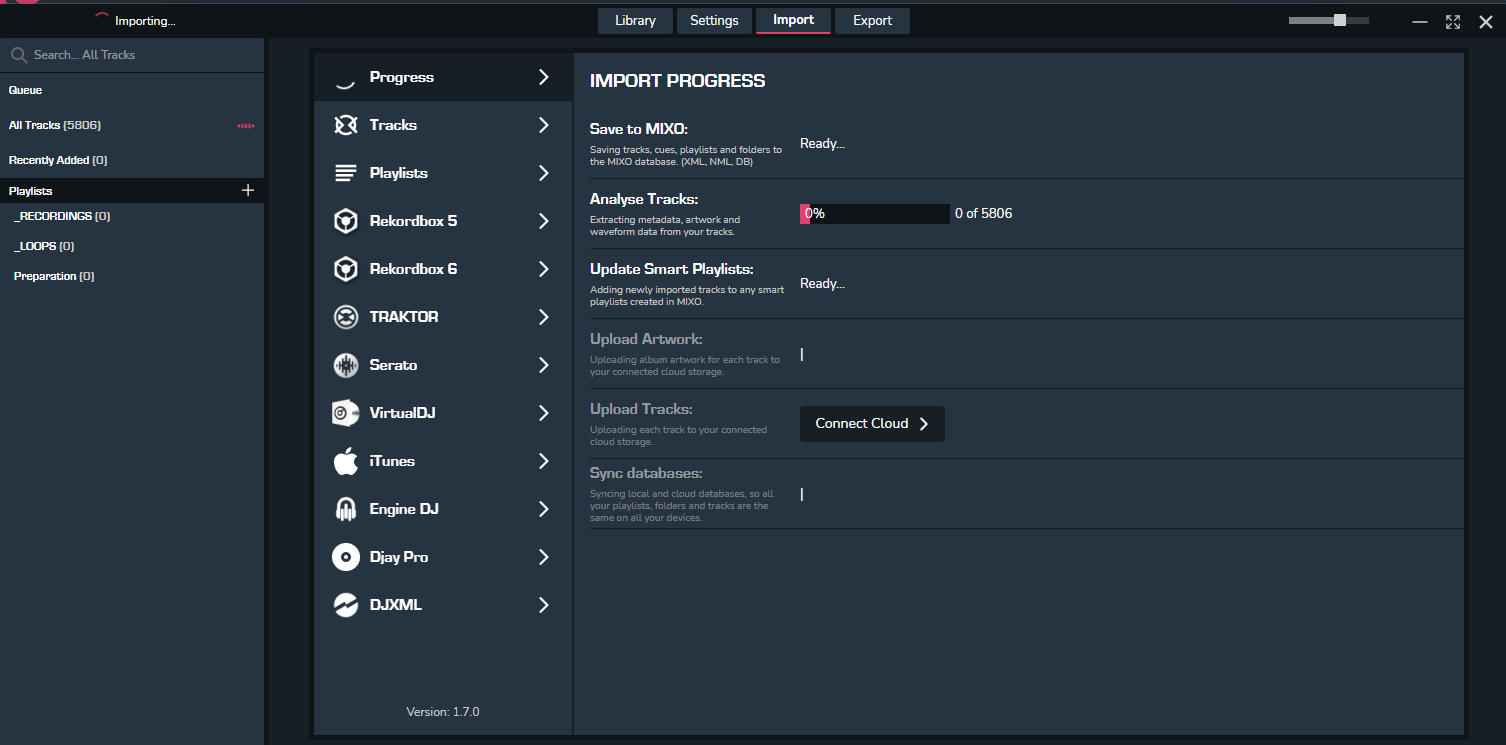 After donwloading and install Mixo, I've imprted my Traktor music collection, but even if it get all the traks it is "analizing" my collection for ages and don't evolve from 0%...?