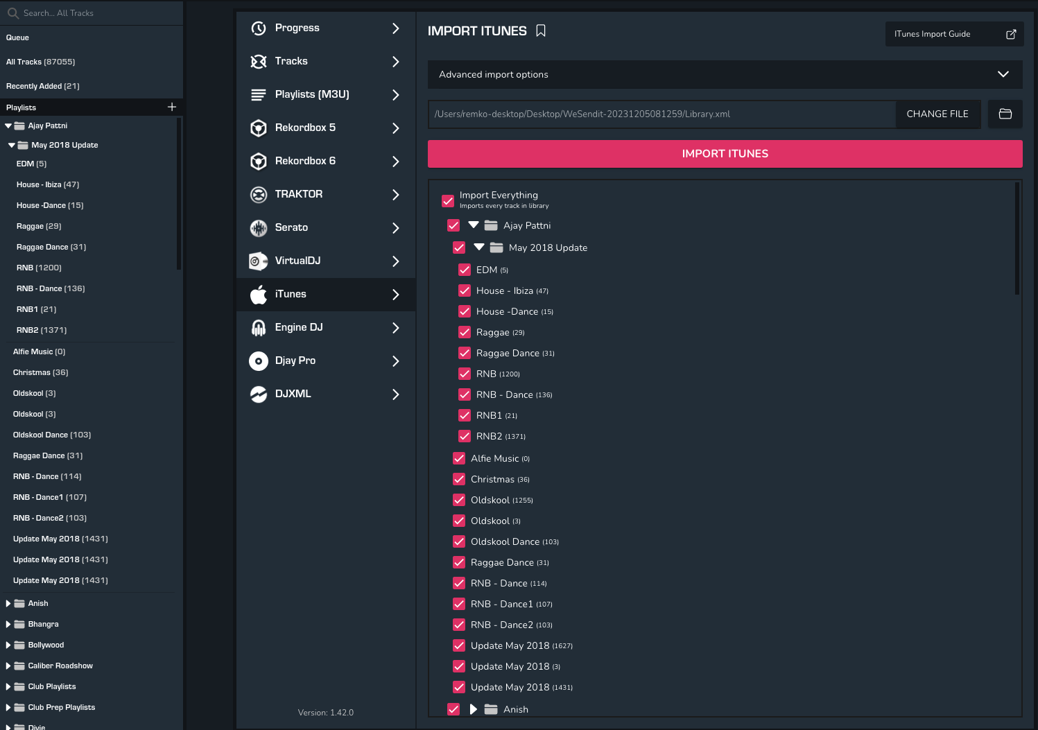 I have just joined Mixo, I have managed to import all playlists from Serato and have tried doing the same with iTunes, while from the number of songs imported i can see the usic has imported however I cannot see any of my itunes playlists which is a big problem for me as my music library consists of in excess of 70000 tracks most of which are sorted into playlists in iTunes