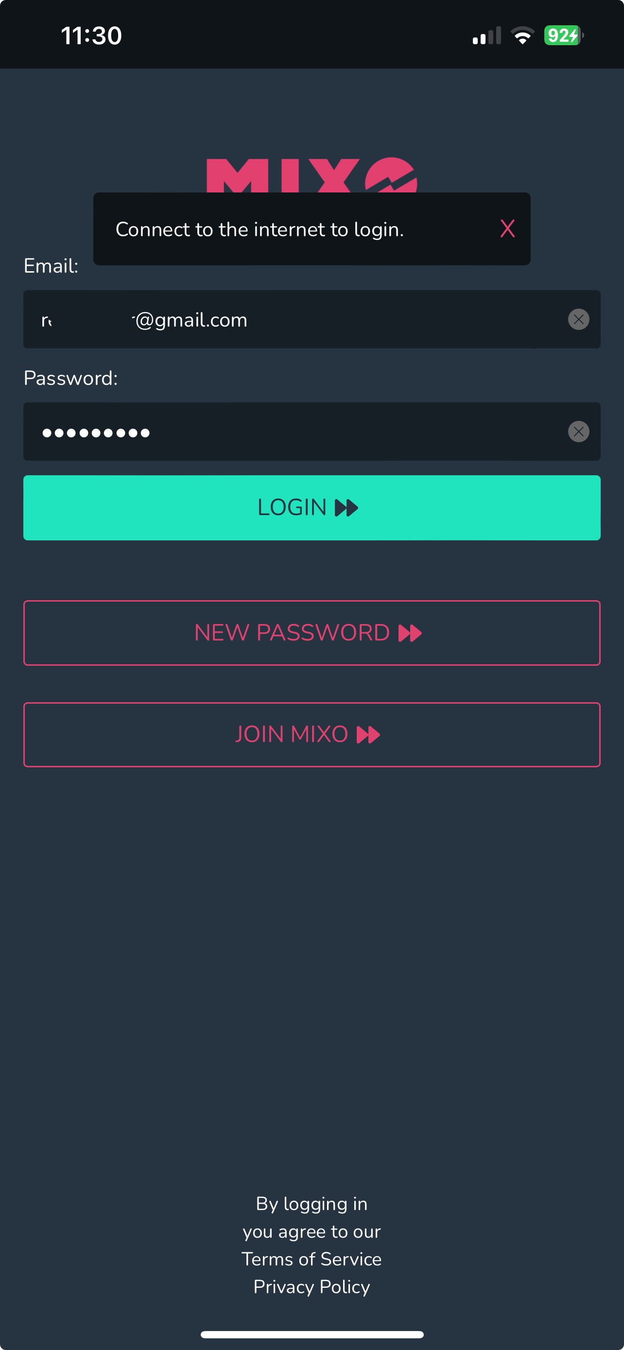 My login details work. I've added this issue also to the open topic https://support.mixo.dj/t/4712-connect-to-the-internet-to-login-warning