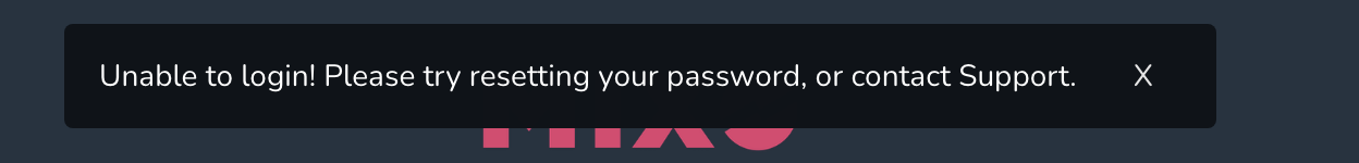 every time i try and log in i get this message pop up on the MIXO app, I have tried resetting my password and even with the new password i'm unable to log in via the MIXO app