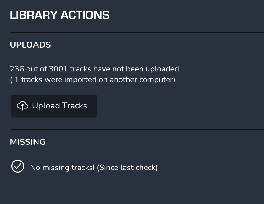 If you have any issues with tracks that are not uploaded, you can right-click and Upload Tracks from the track list at any time.