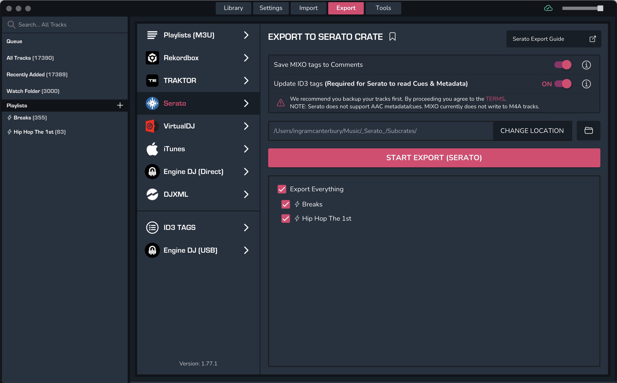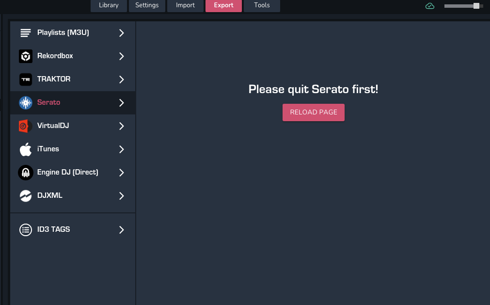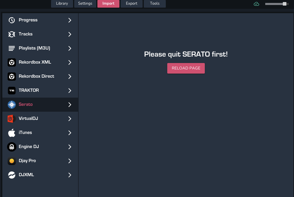 Serato Import Export not availabe