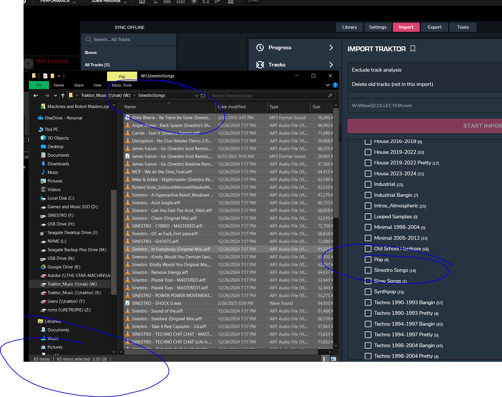 ok I did the same. I imported all and 3149 tracks imported, but again only 14 tracks in the sinestro songs genre folder and all the tracks are grey? says none were analysed.