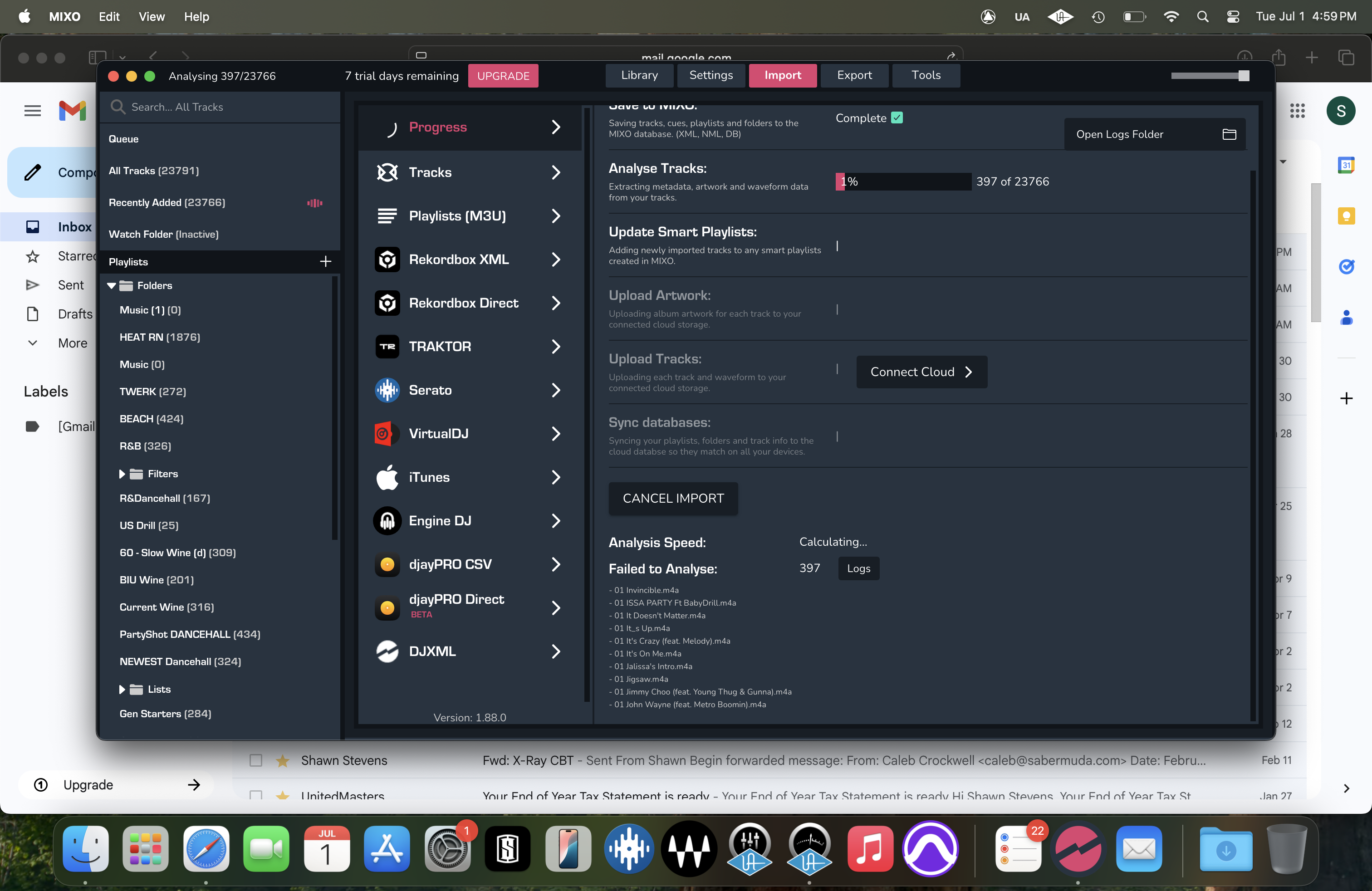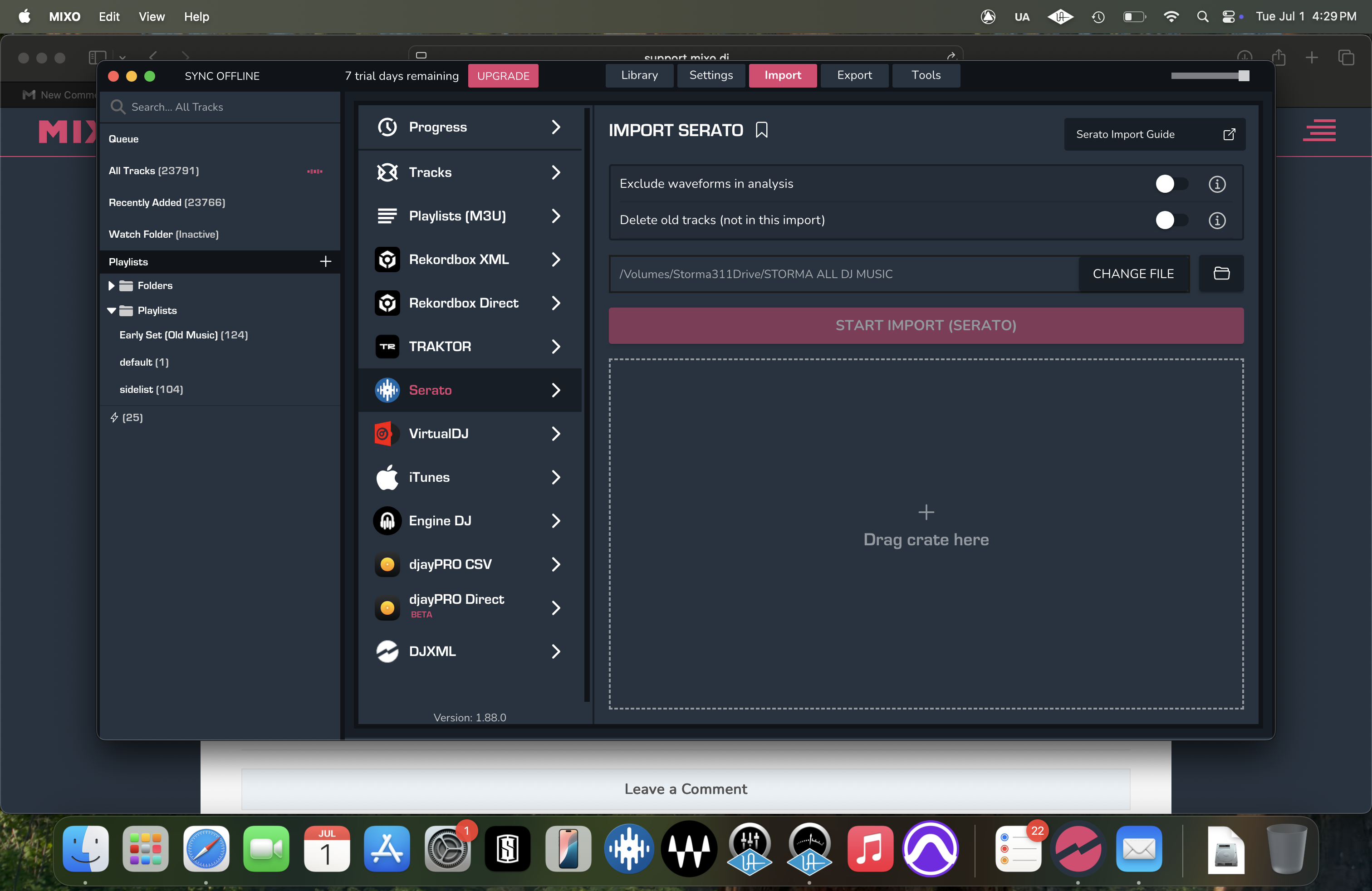 Please can you show me a screenshot of the Import Serato page in MIXO, one of your crate files and the failed txt. Thanks!
