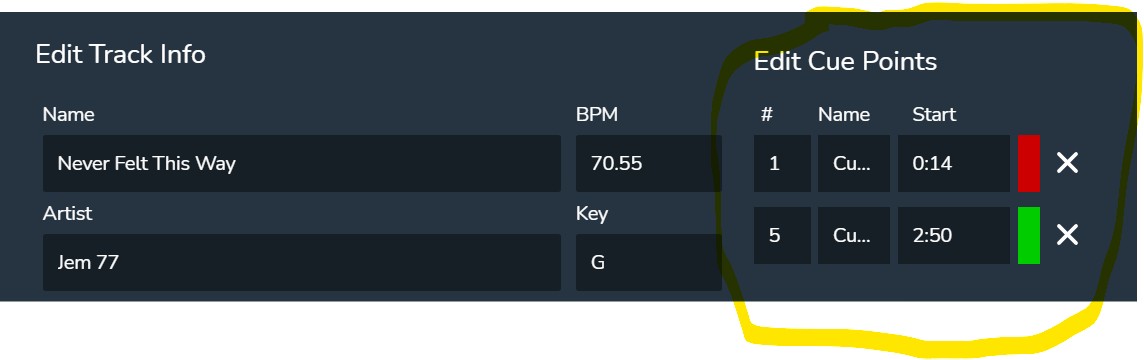 I’ll have a look in Mixo. Daft question, how do I see the cue points on the tracks in Mixo?