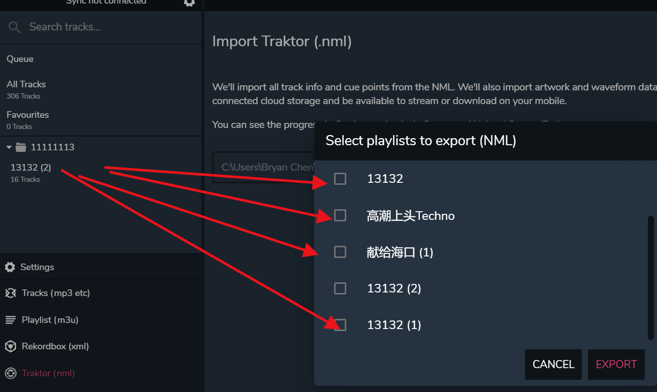 there is an error occur according to this figure that when i gonna export the playlist to Traktor i saw there are many playlist that i have deleted still show as the export options. i didn't test other software export.