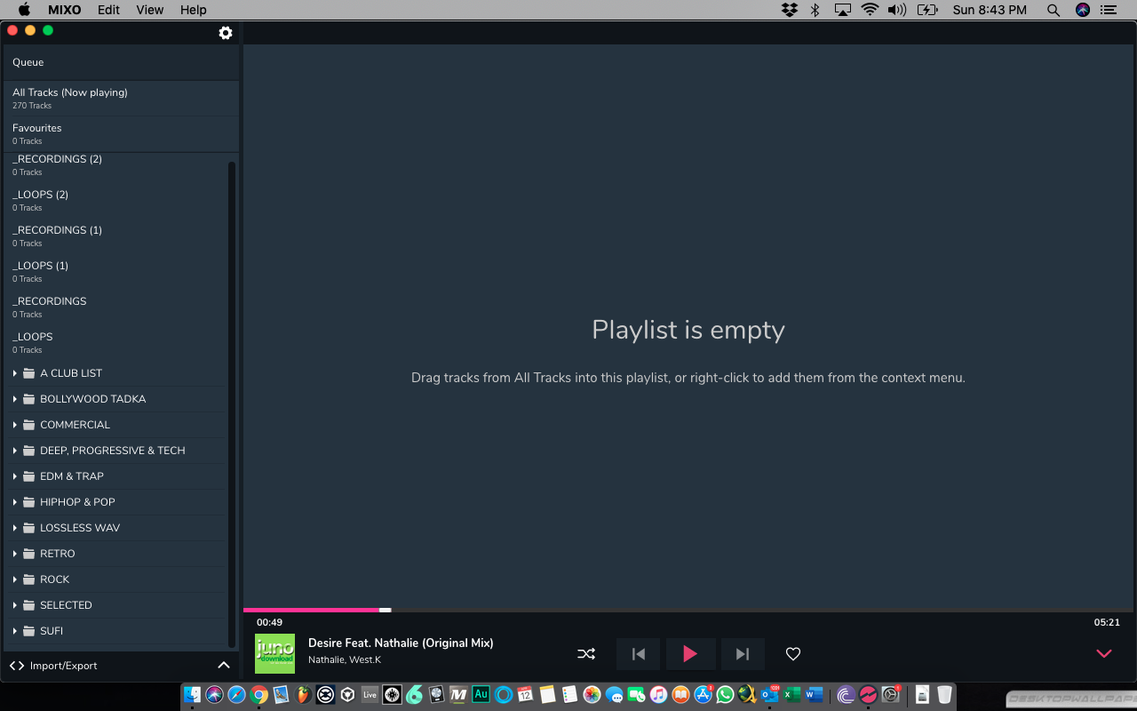 I am importing my main playlist which I use for my daily performance, nor I'm exporting or copying the tracks.