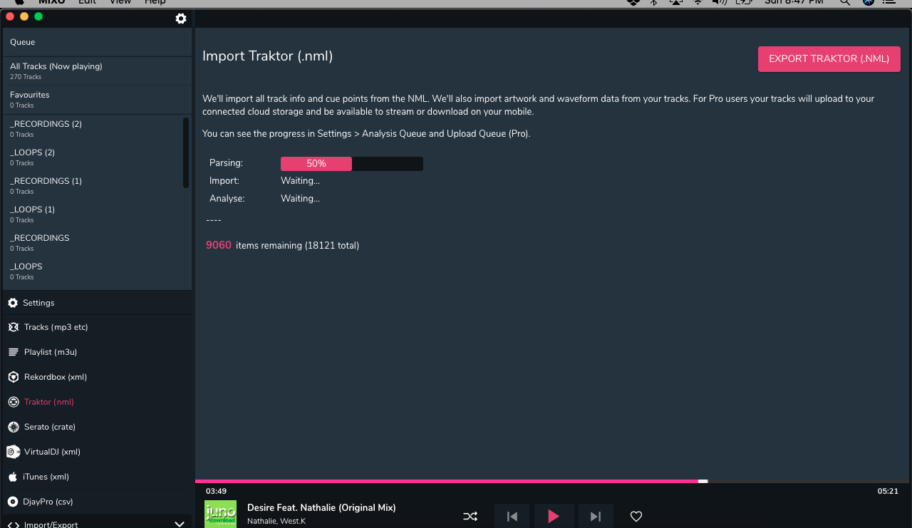 I understand large libraries takes time, I have given at least 3hours of idle time but here what happened when I selected my NML only 270 tracks showing rest is not importing to the MIXO also I have reinstalled the software and then when I import the library its shows an error.