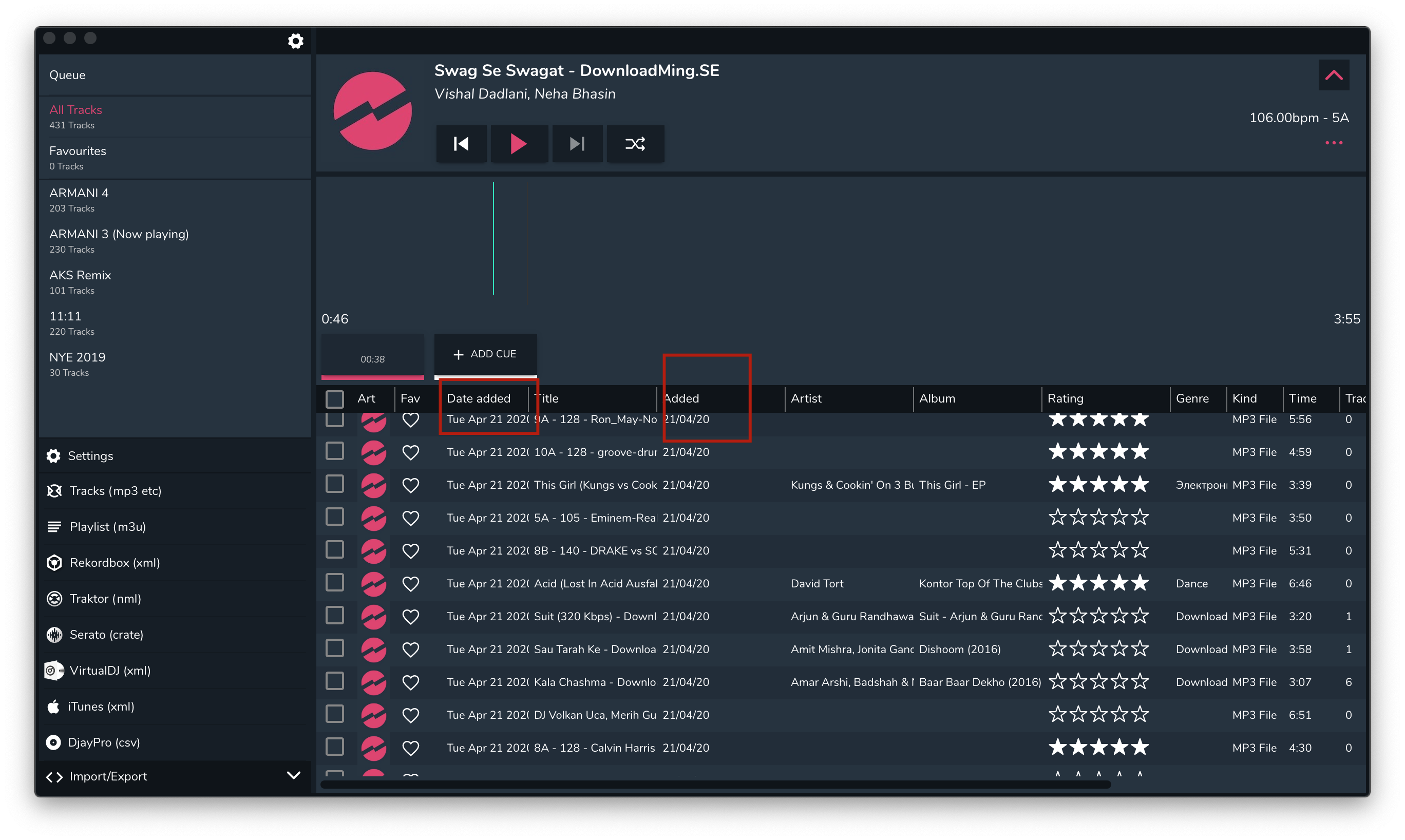 The software lags a lot after 500 tracks or so (and the"Date Added" column appeared and disappeared. Had to uninstall and reinstall to get the extra columns to show again)